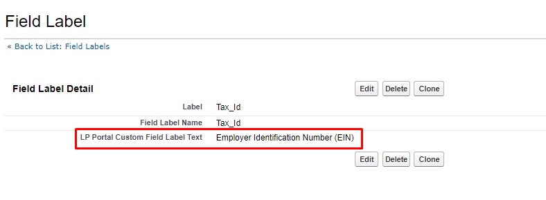 Update the LP Portal Custom Field Label Text to Employer Identification Number (EIN).